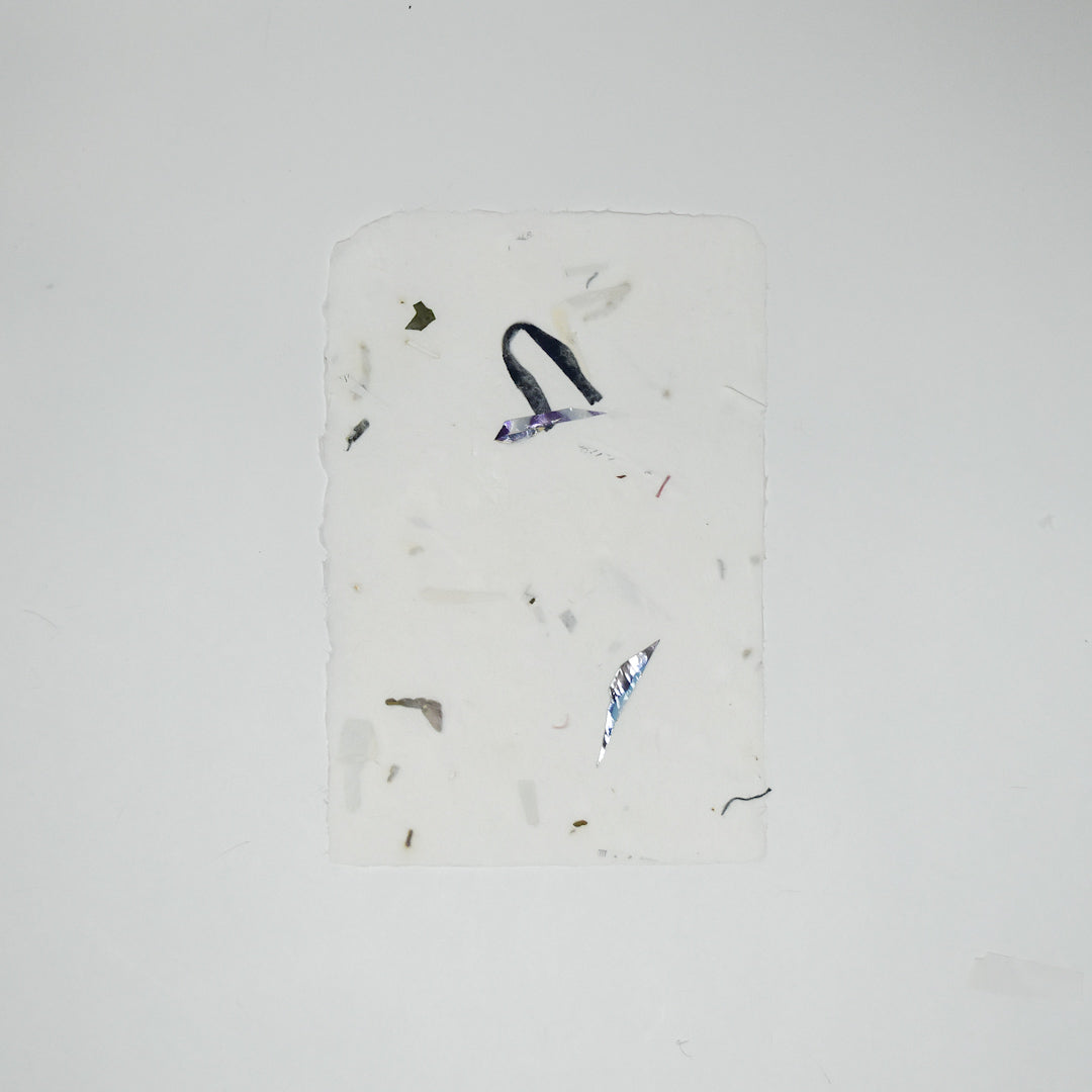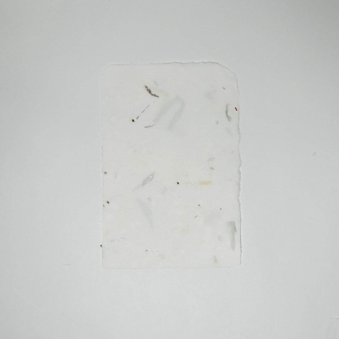 しのぶさんが作るオリジナル紙漉き製品です。草の葉や種、鉛筆削りで出たカラフルなやつ、包装紙の切れ端...季節や気分のネタを入れて、自由に製作しています。