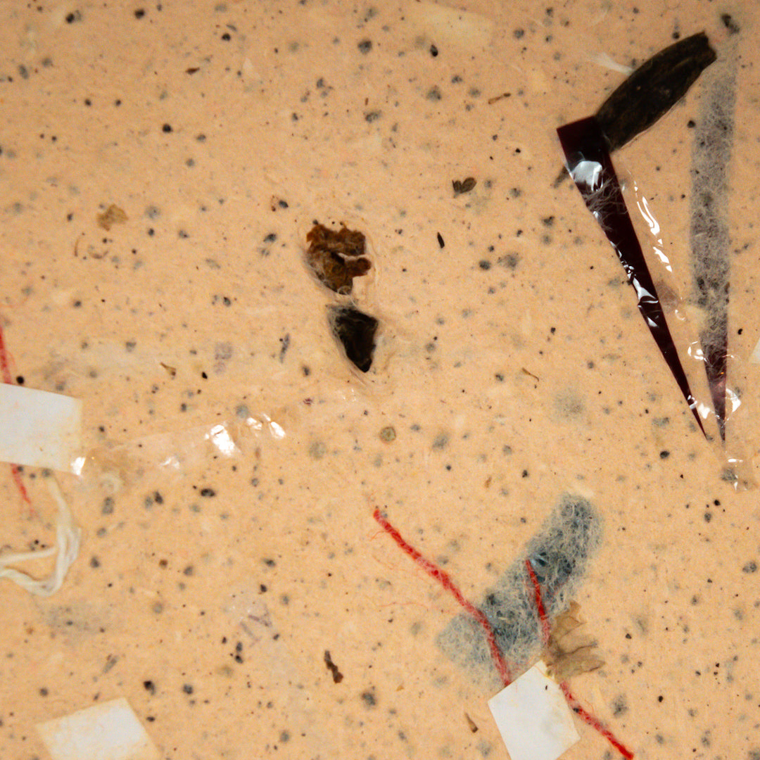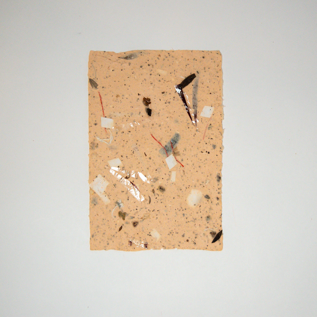しのぶさんが作るオリジナル紙漉き製品です。草の葉や種、鉛筆削りで出たカラフルなやつ、包装紙の切れ端...季節や気分のネタを入れて、自由に製作しています。