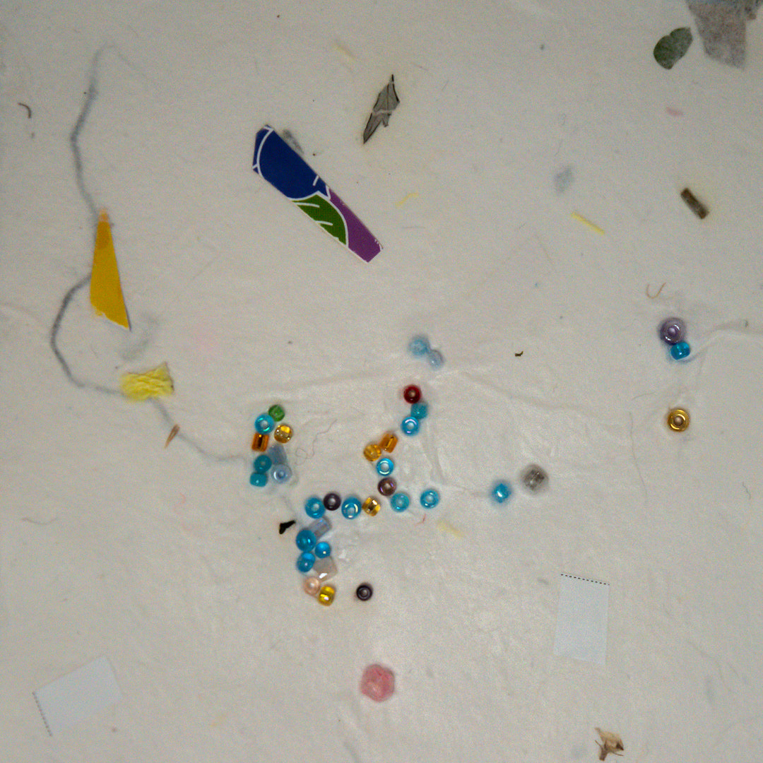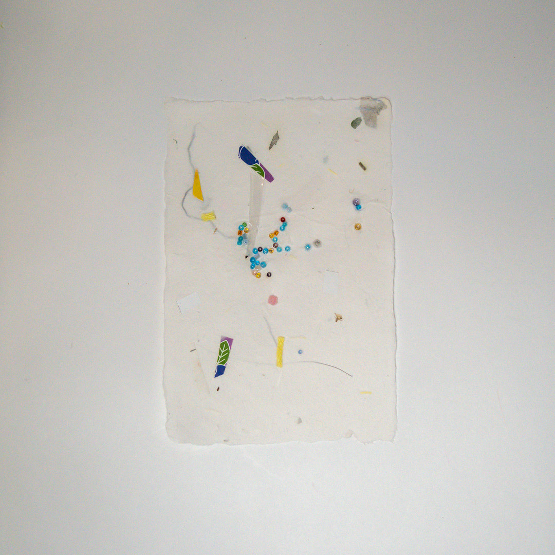 しのぶさんが作るオリジナル紙漉き製品です。草の葉や種、鉛筆削りで出たカラフルなやつ、包装紙の切れ端...季節や気分のネタを入れて、自由に製作しています。