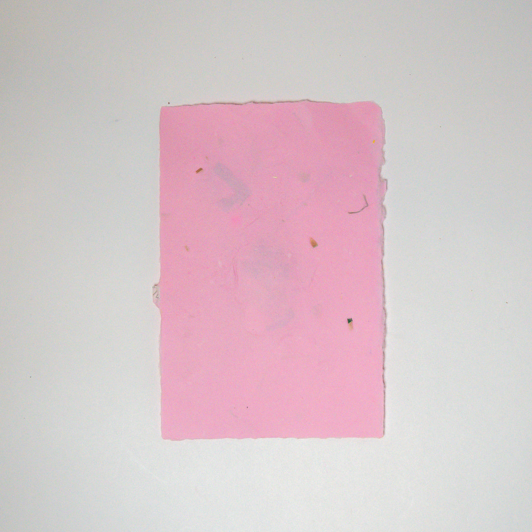 しのぶさんが作るオリジナル紙漉き製品です。草の葉や種、鉛筆削りで出たカラフルなやつ、包装紙の切れ端...季節や気分のネタを入れて、自由に製作しています。