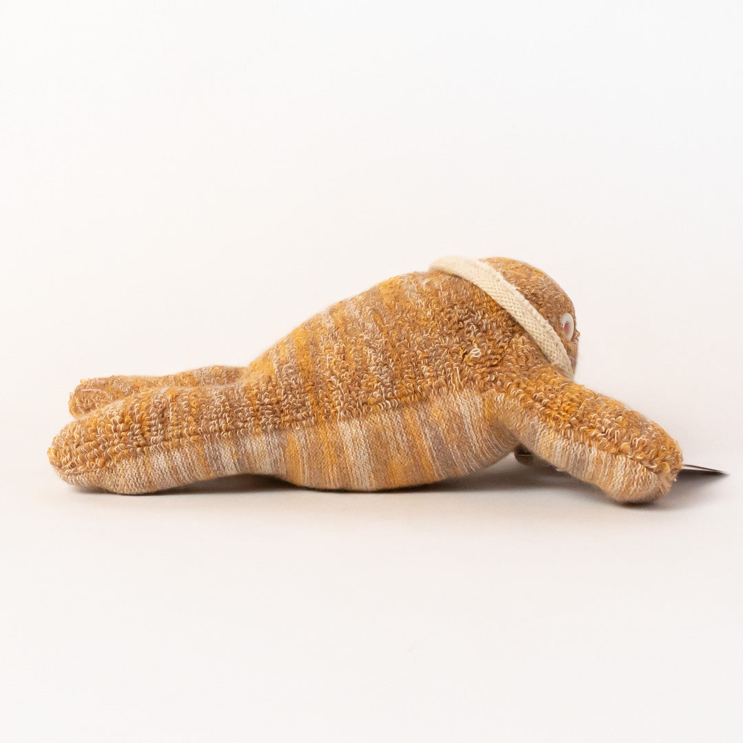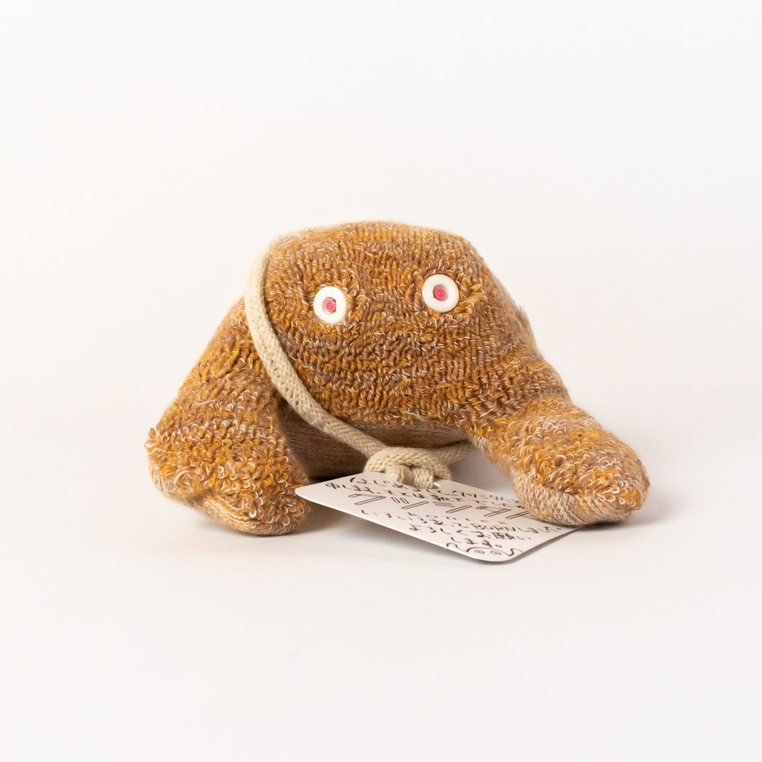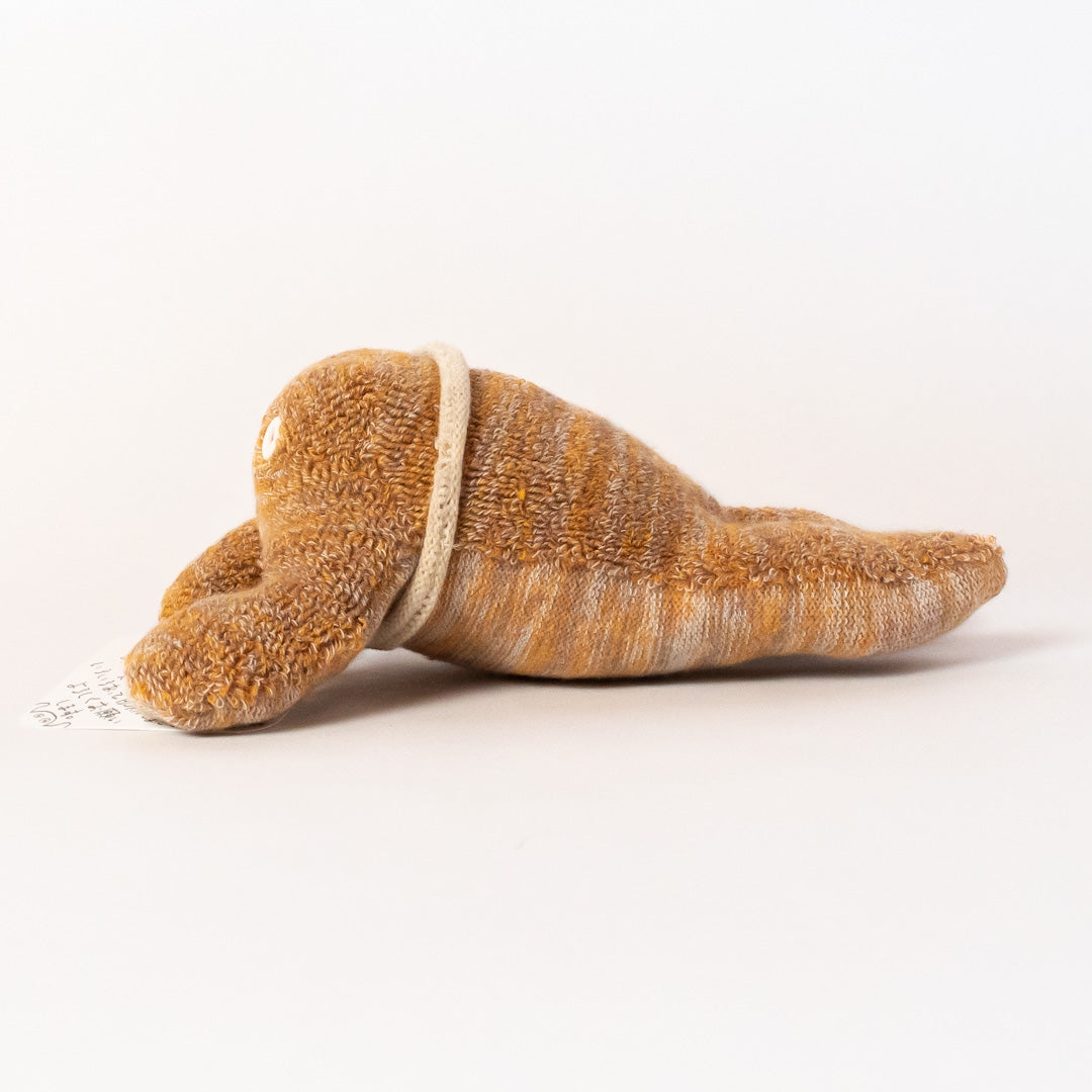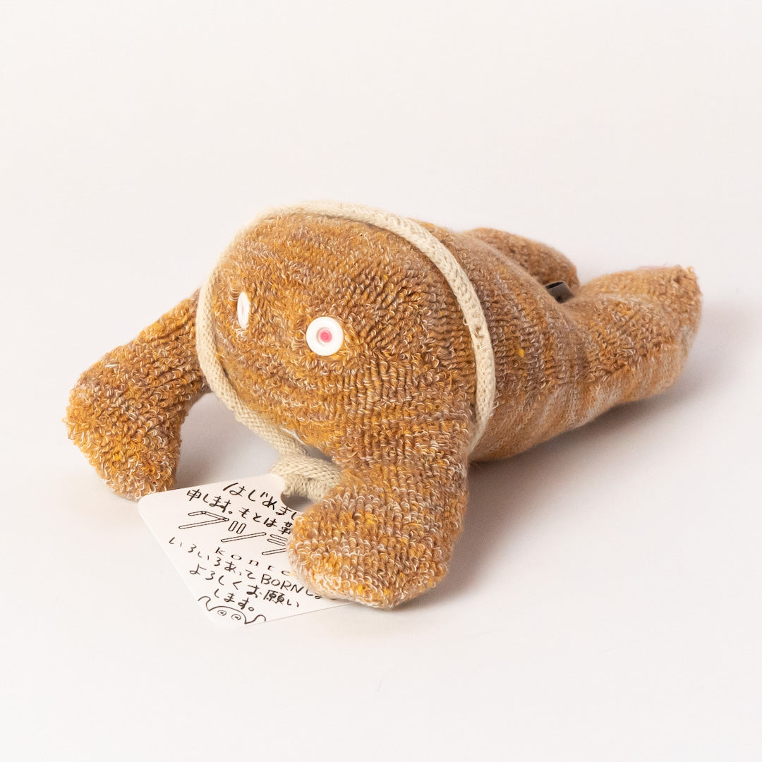 クツシタ人(じん)は、“わけあり靴下”をアップサイクルして生まれたぬいぐるみです。 何とも言えない愛らしいたたずまいで、ついニギニギしたくなる触り心地です。
