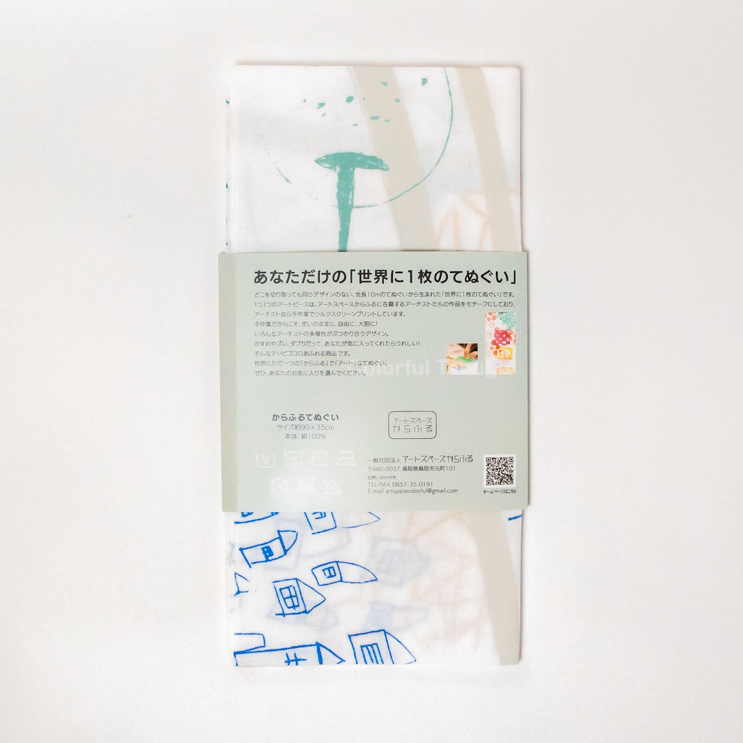からふるオリジナルの柄をアーチスト自らが一つひとつ手刷りした「世界にたった一つのてぬぐい」です。