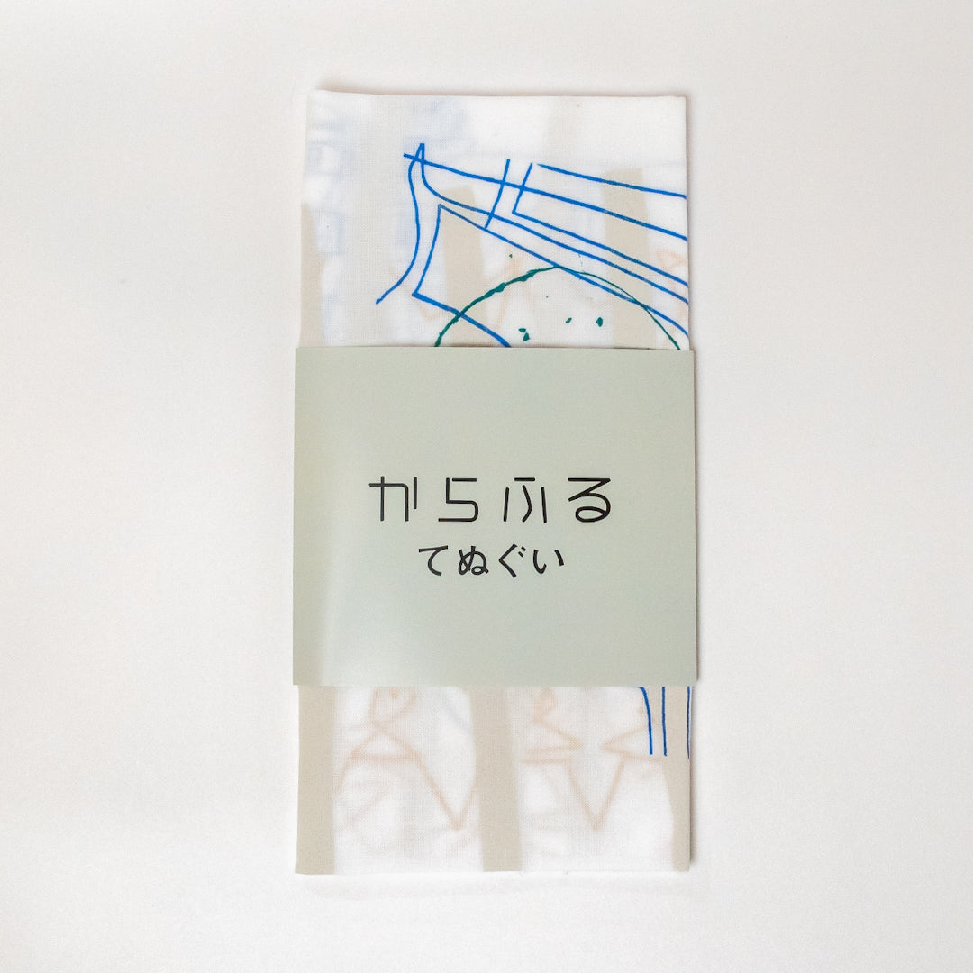 からふるオリジナルの柄をアーチスト自らが一つひとつ手刷りした「世界にたった一つのてぬぐい」です。
