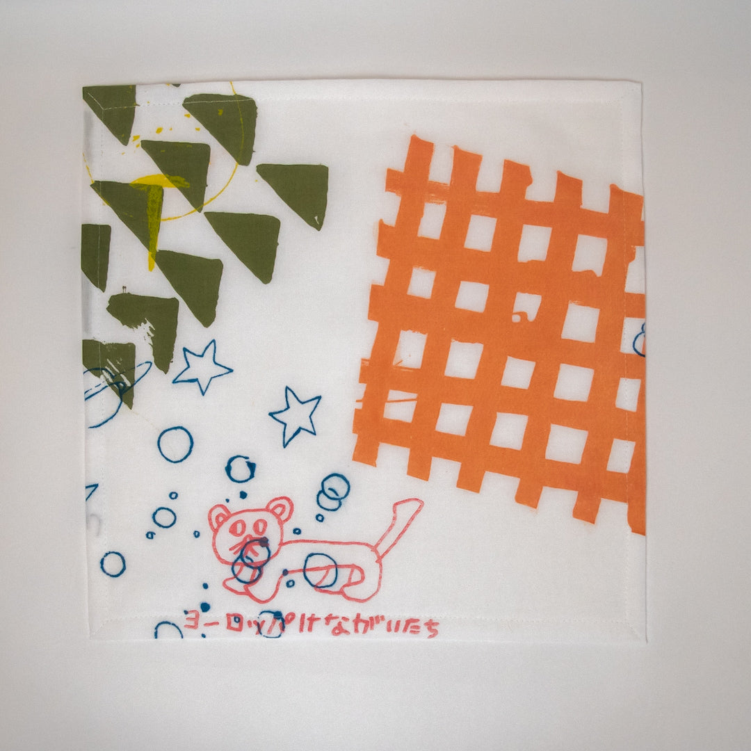 【サイズ】24.5cm×24.5cm【素材】晒 白 綿100% シルクスクリーンインク(シルクスクリーン印刷)