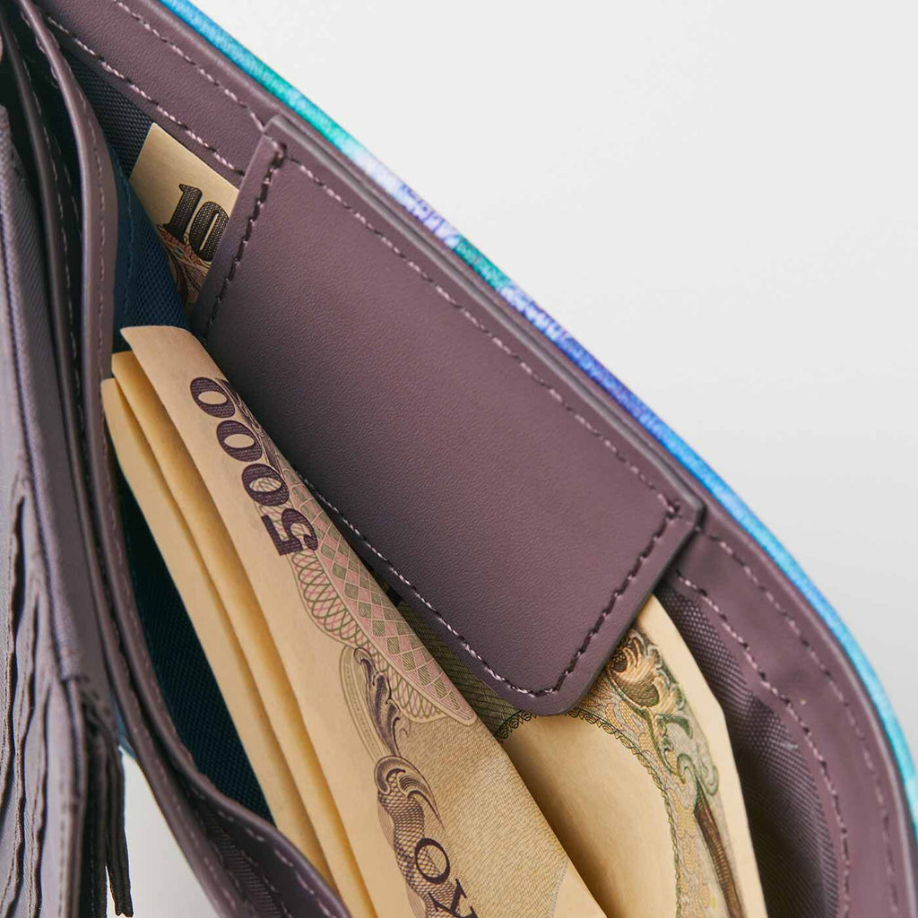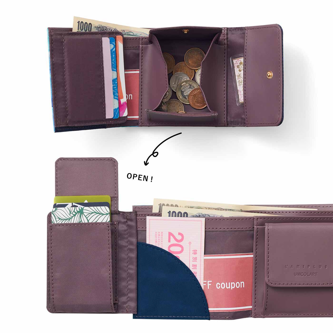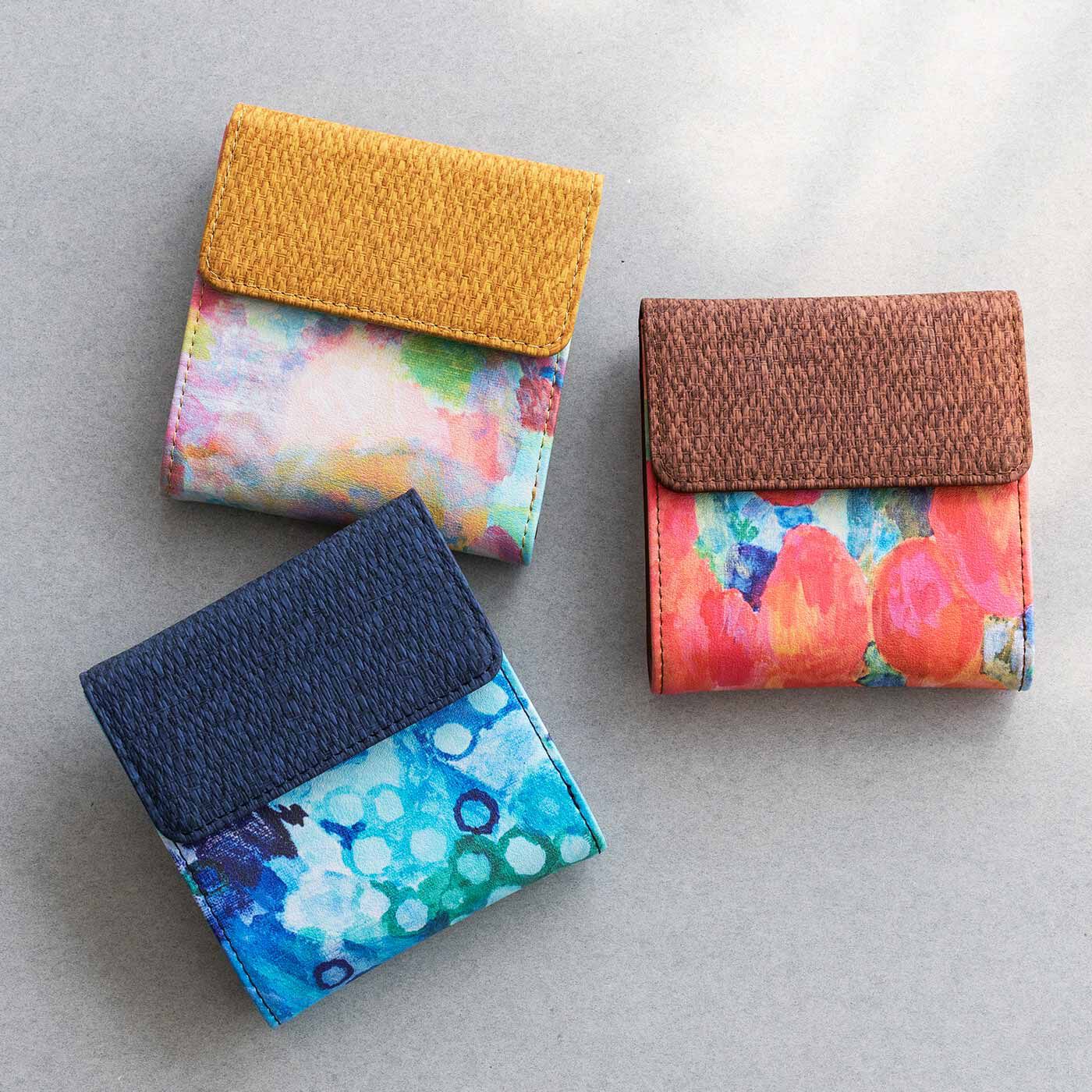 アートをまとって彩り豊かな二つ折り財布ができました。小さいながらも、整とん上手なポケットが充実。お財布はサイズダウンしつつ、やりくり力は高めたい人におすすめです。