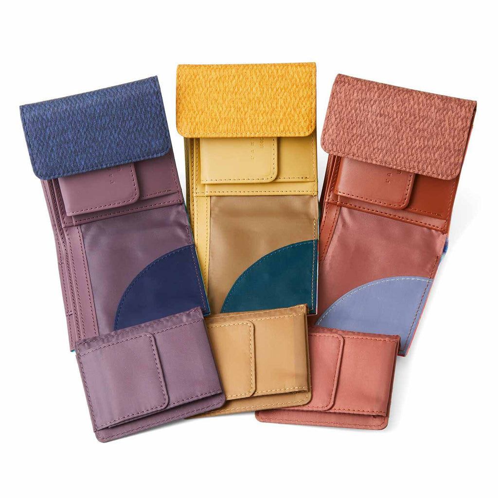 アートをまとって彩り豊かな二つ折り財布ができました。小さいながらも、整とん上手なポケットが充実。お財布はサイズダウンしつつ、やりくり力は高めたい人におすすめです。