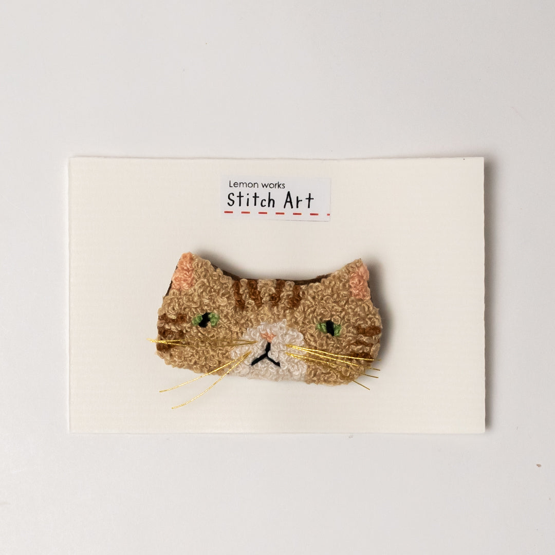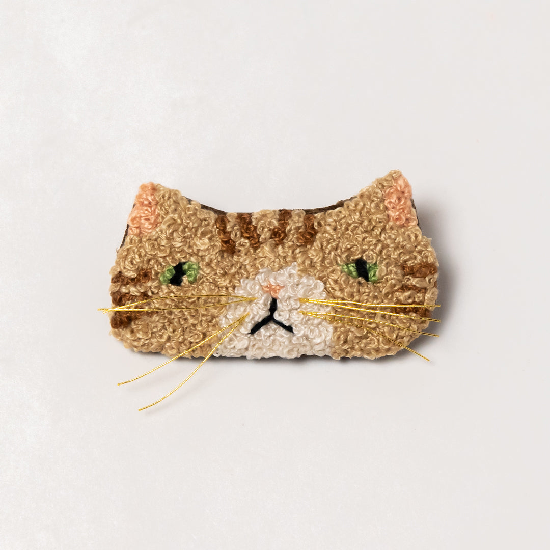 ふわふわモコモコした感じが可愛い猫の刺繍ブローチです。毛並みはすべて玉止めで刺繍していて1つ1つ手縫いしています。プレゼントやコーディネイトのワンポイントにいかがでしょうか?