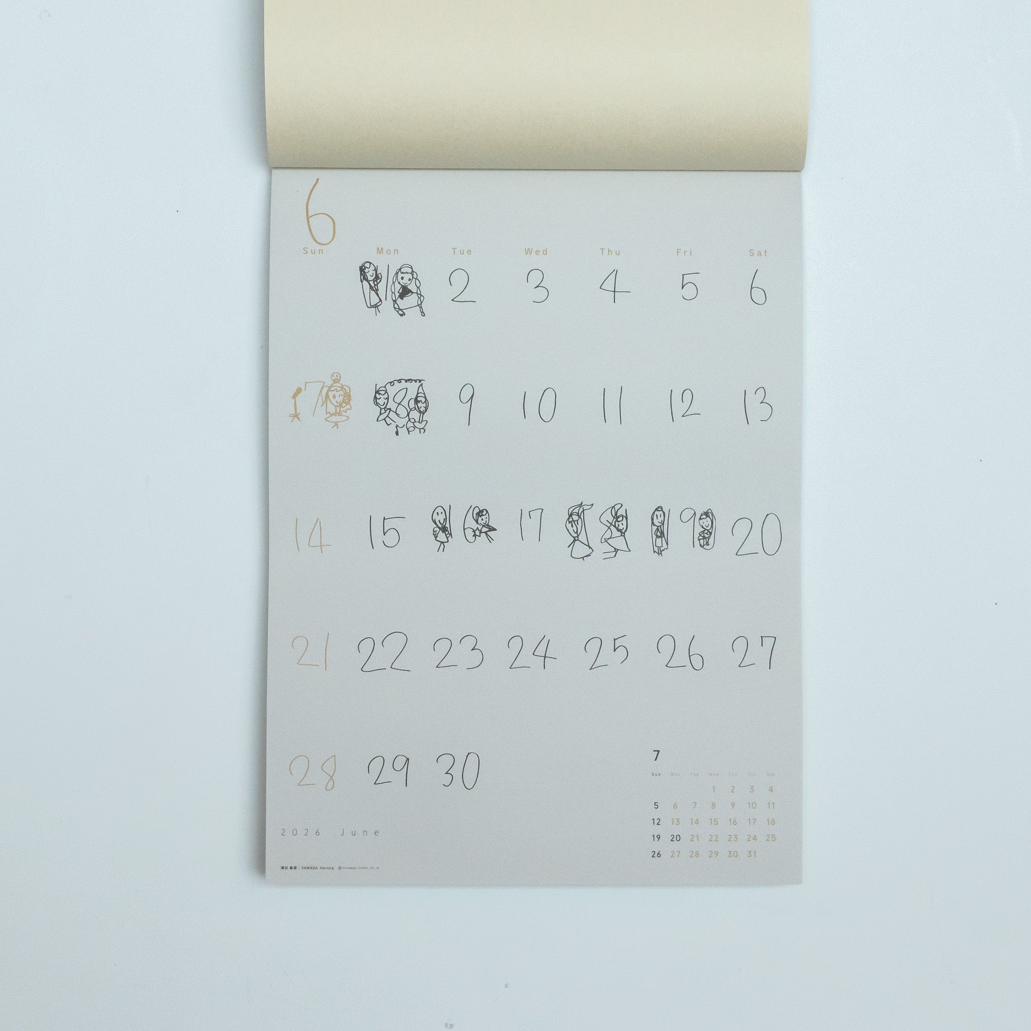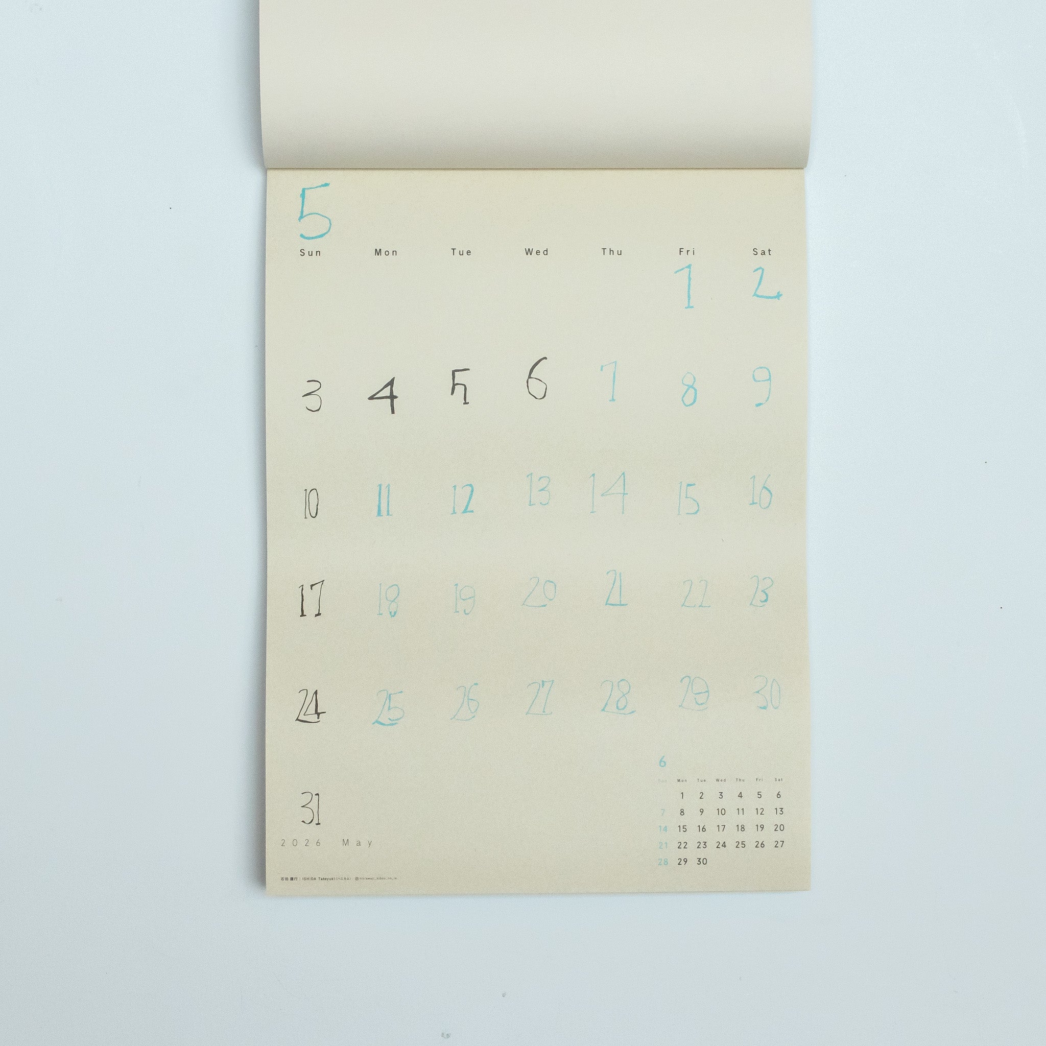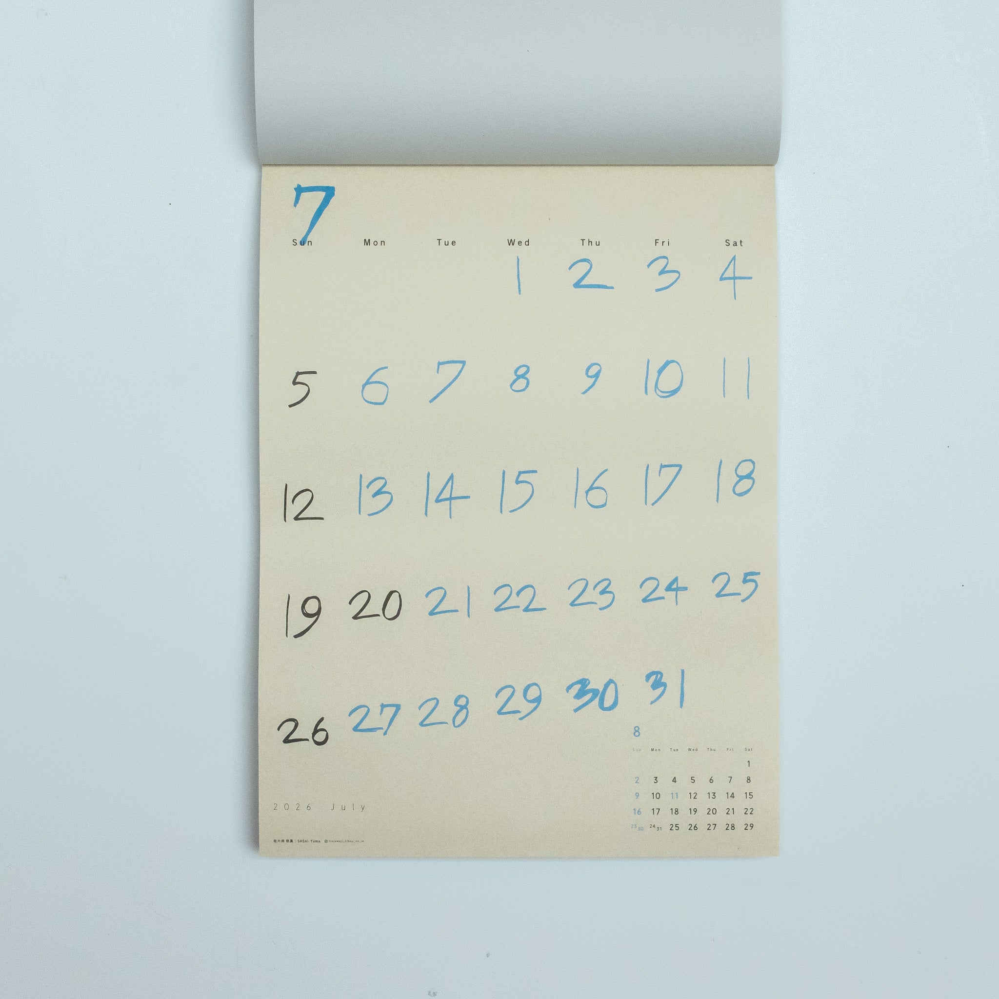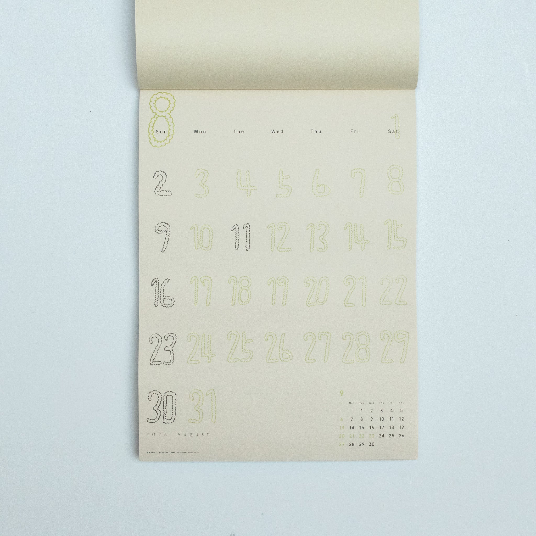 大きな数字で描かれている壁掛けカレンダーは、月めくりになっています。大きな文字が並んでいるので見やすくて、日常的に使いやすいカレンダーです。
