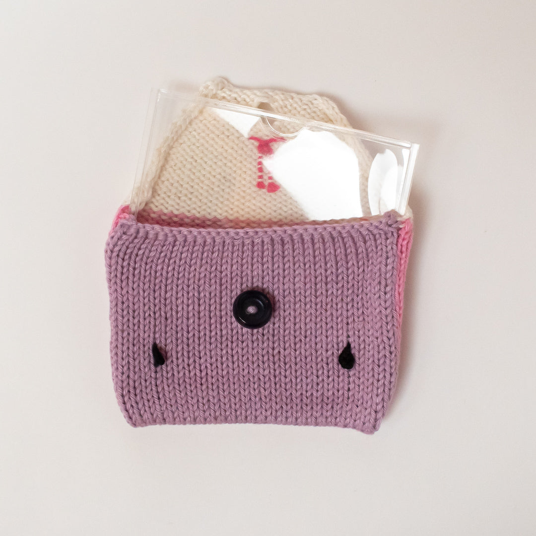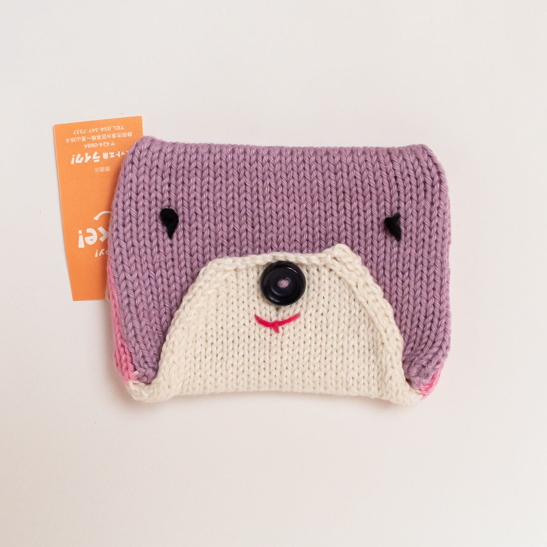 カードケースというと、一般的にはハードなプラスチックや金属などで作られた物が多いですが、こういうニット製のカードケースはいかがでしょうか?ひっくり返すとクマさんに見えます。温かさと共にどこか、柔らかさを感じる手触りとデザインをどうぞ。