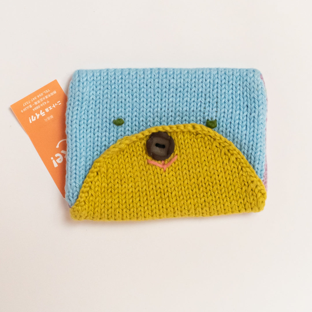 カードケースというと、一般的にはハードなプラスチックや金属などで作られた物が多いですが、こういうニット製のカードケースはいかがでしょうか?ひっくり返すとクマさんに見えます。温かさと共にどこか、柔らかさを感じる手触りとデザインをどうぞ。