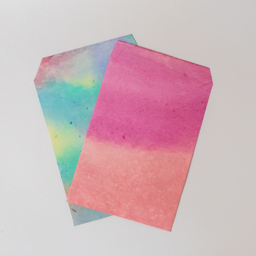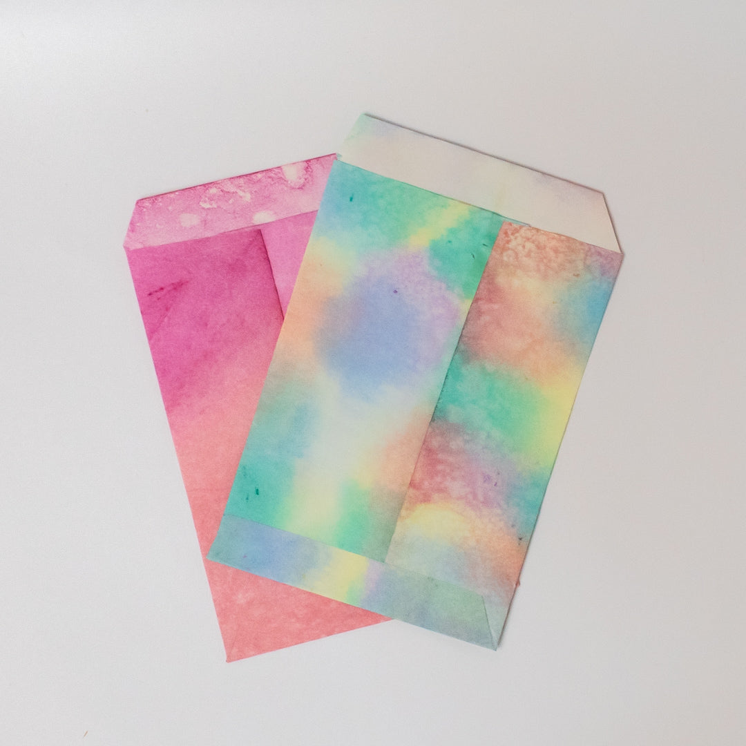 ステンドグラスのように鮮やかで透明感ある封筒で、とても手が込んだ一点ものです。