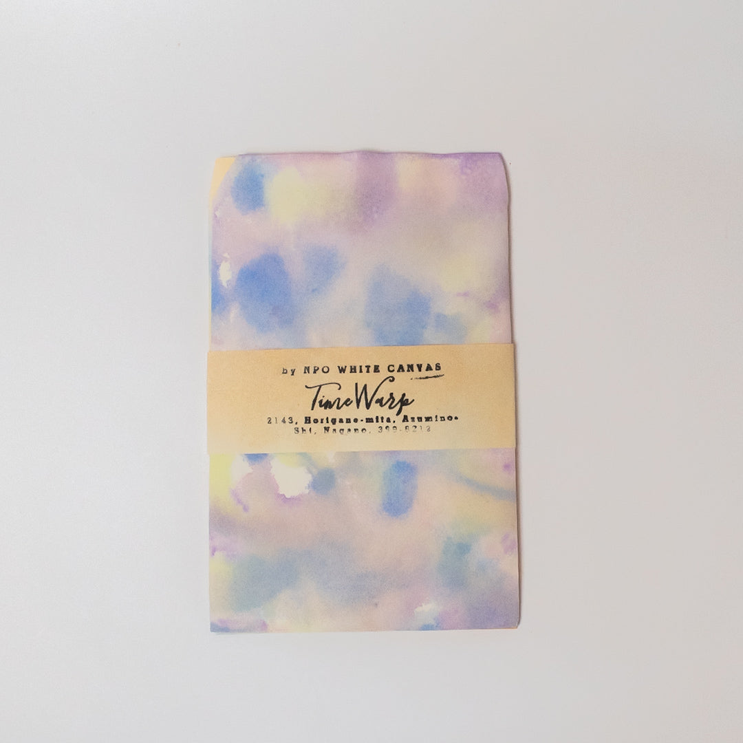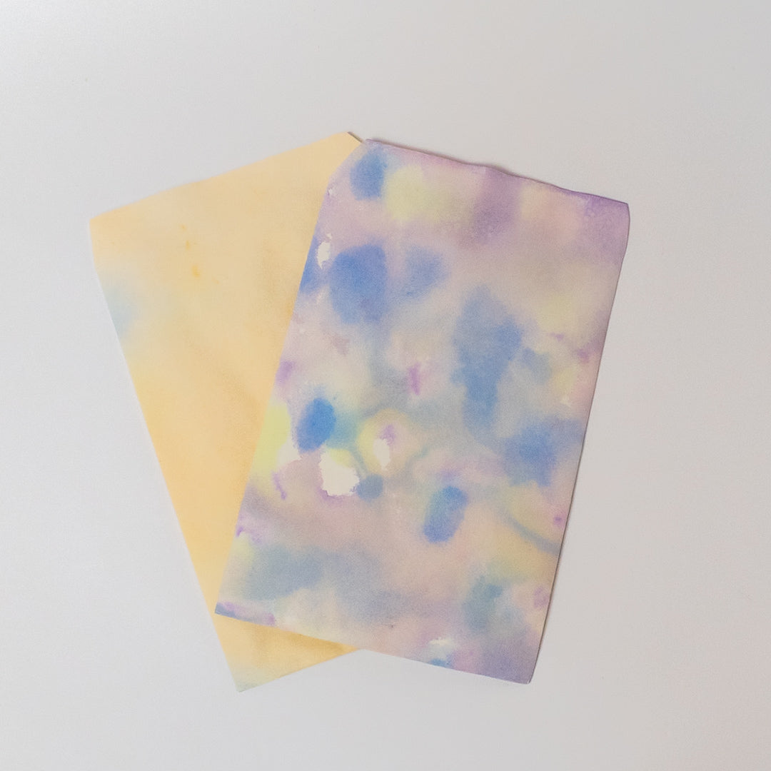 障子紙に水彩でにじみ絵を描いた色鮮やかな素材をろうびきした