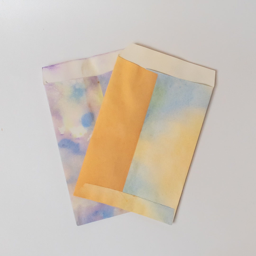 ステンドグラスのように鮮やかで透明感ある封筒で、とても手が込んだ一点ものです。