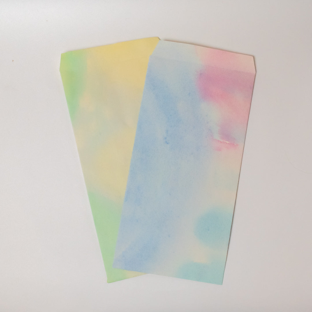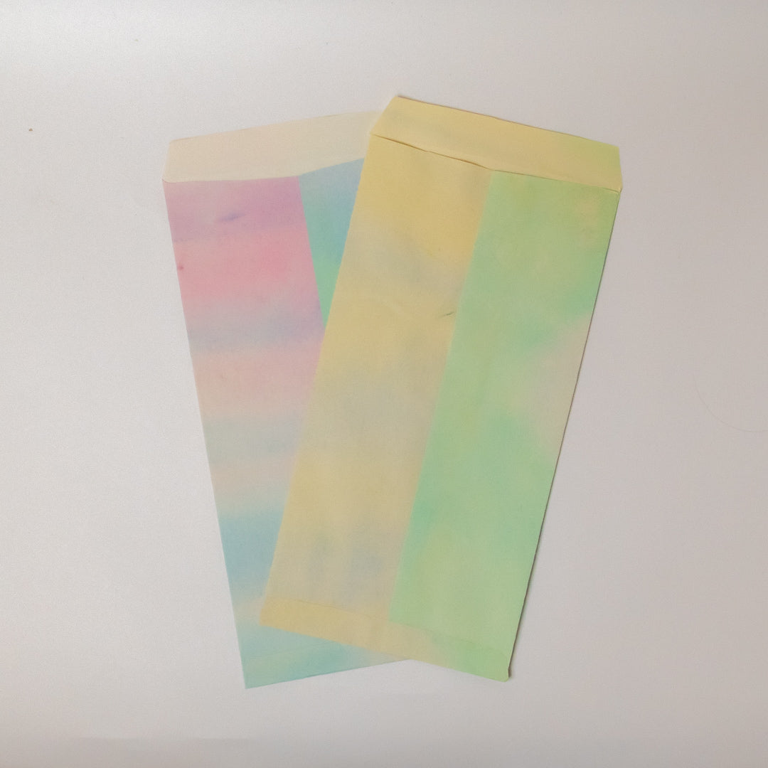 ステンドグラスのように鮮やかで透明感ある封筒で、とても手が込んだ一点ものです。