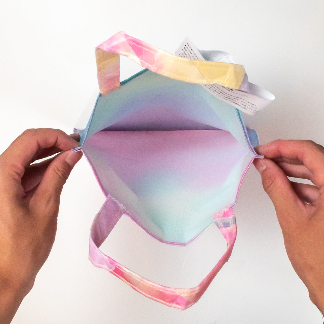 ステンドグラスのように鮮やかで透明感あるバッグで、とても手が込んだ一点ものです。