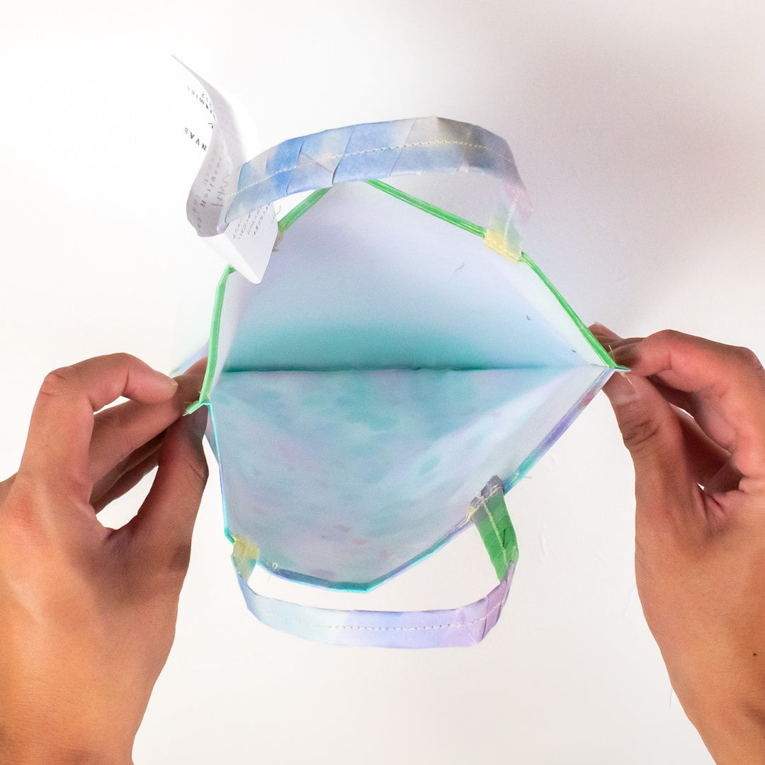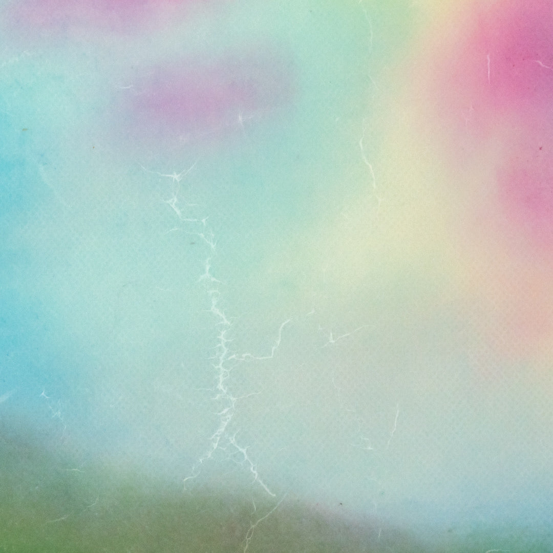障子紙に水彩でにじみ絵を描いた色鮮やかな素材をろうびきした