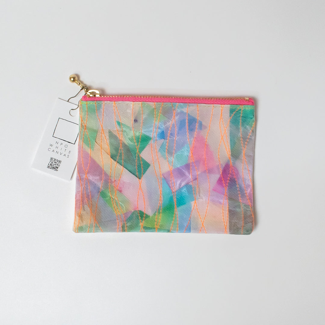 ステンドグラスのように鮮やかで透明感あるポーチでとても手が込んだ一点ものです。しっかりした紙製品ですが防水ではありません。