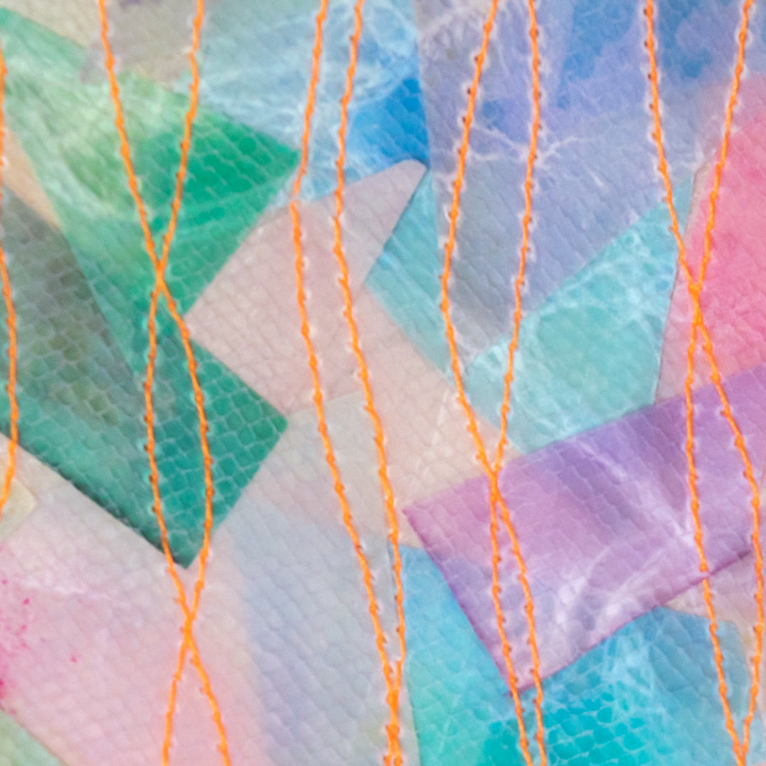 障子紙に水彩でにじみ絵を描いた色鮮やかな素材をろうびきした