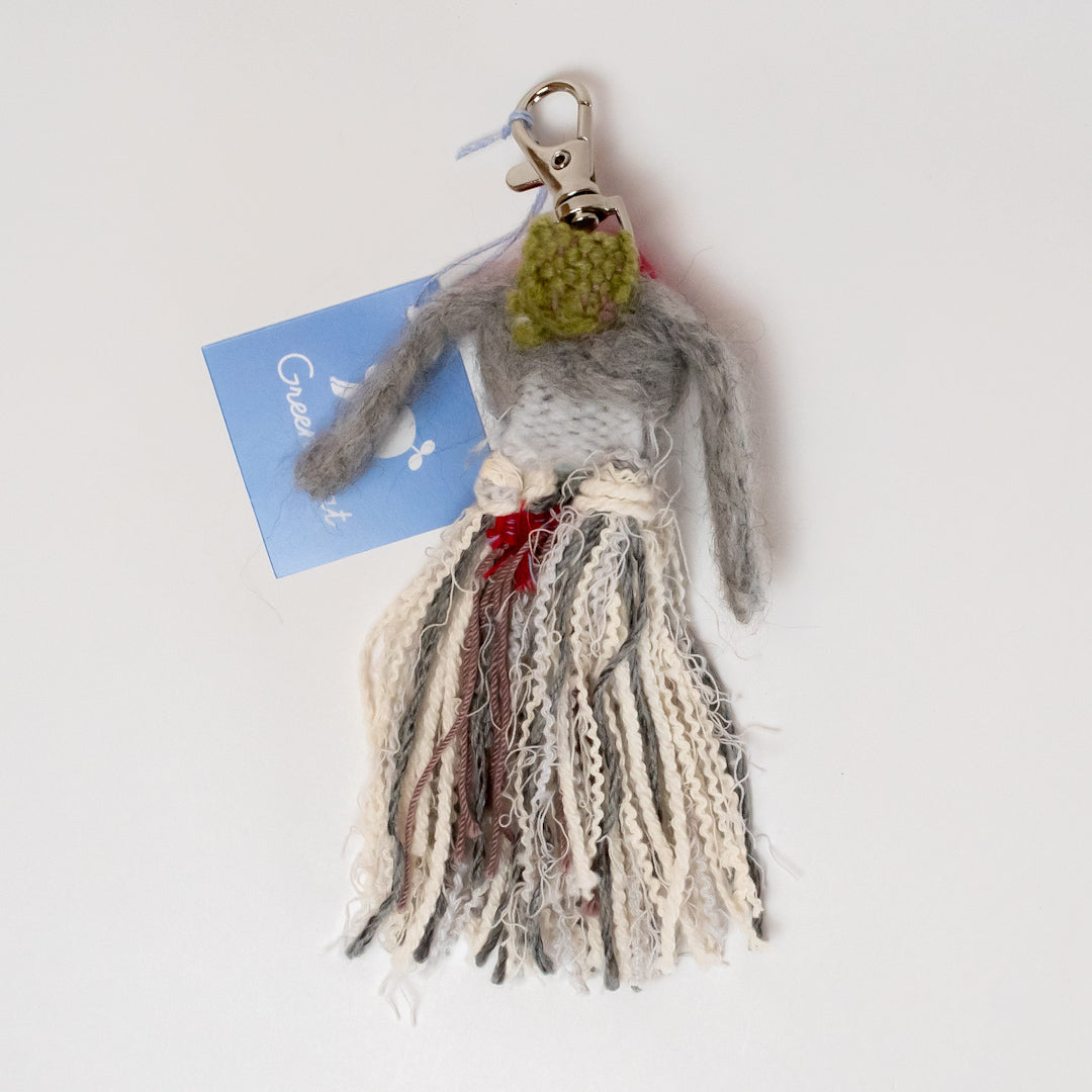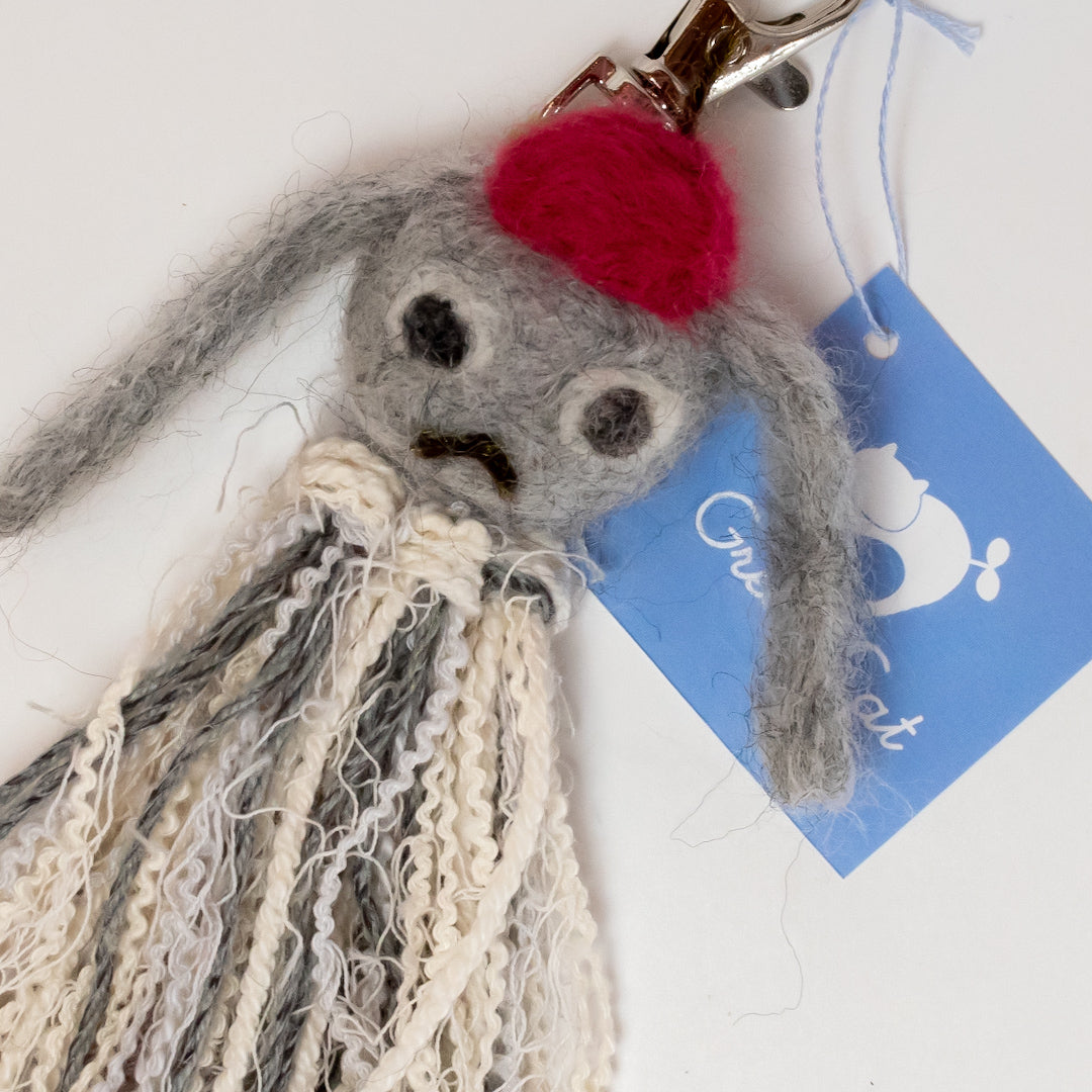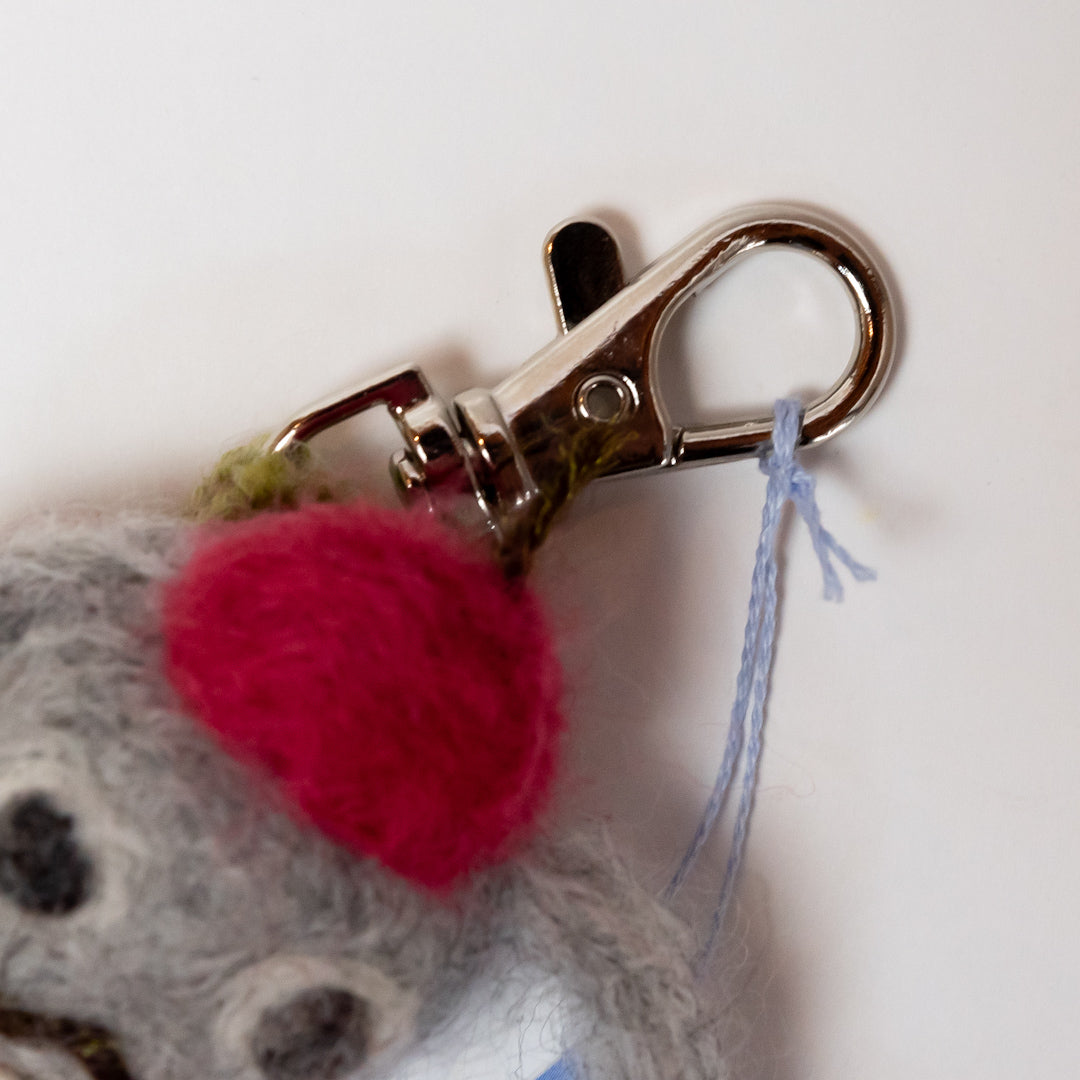 ユニークなキャラクターのキーホルダーを、ウィービングと羊毛で製作しました。メンバーのMOCOLINさんが自由な発想で製作した商品です。