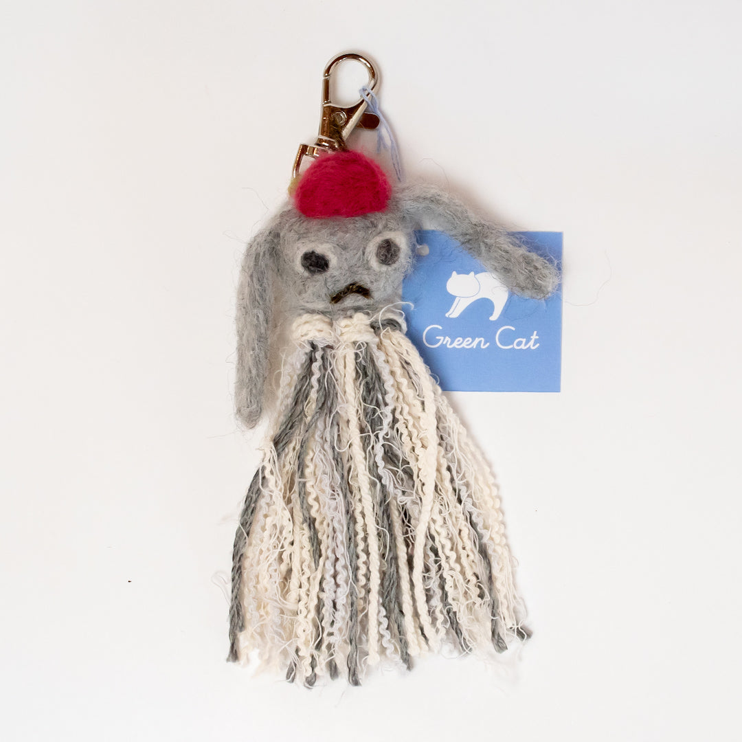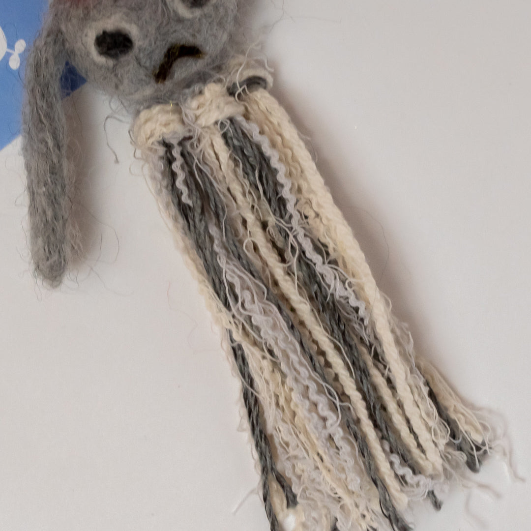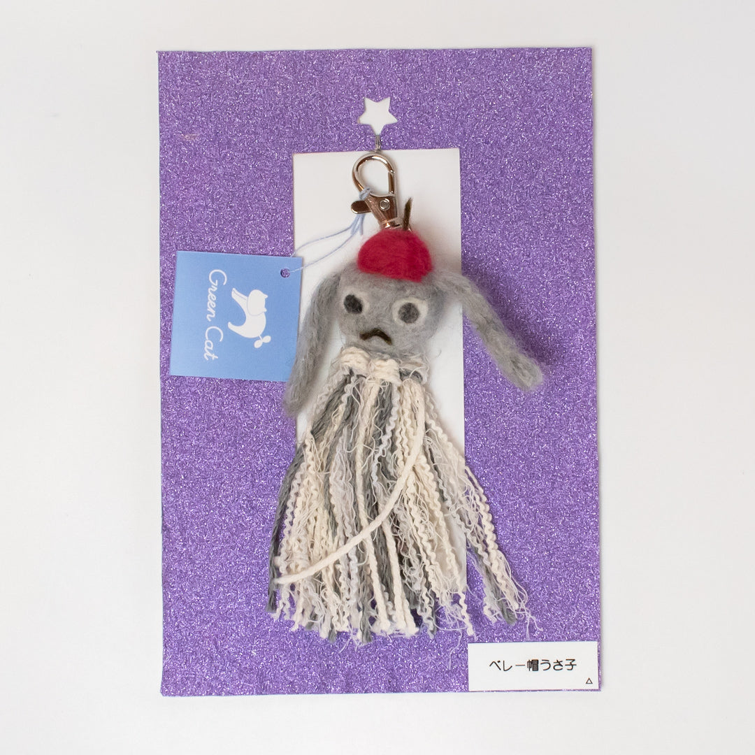 ユニークなキャラクターのキーホルダーを、ウィービングと羊毛で製作しました。メンバーのMOCOLINさんが自由な発想で製作した商品です。