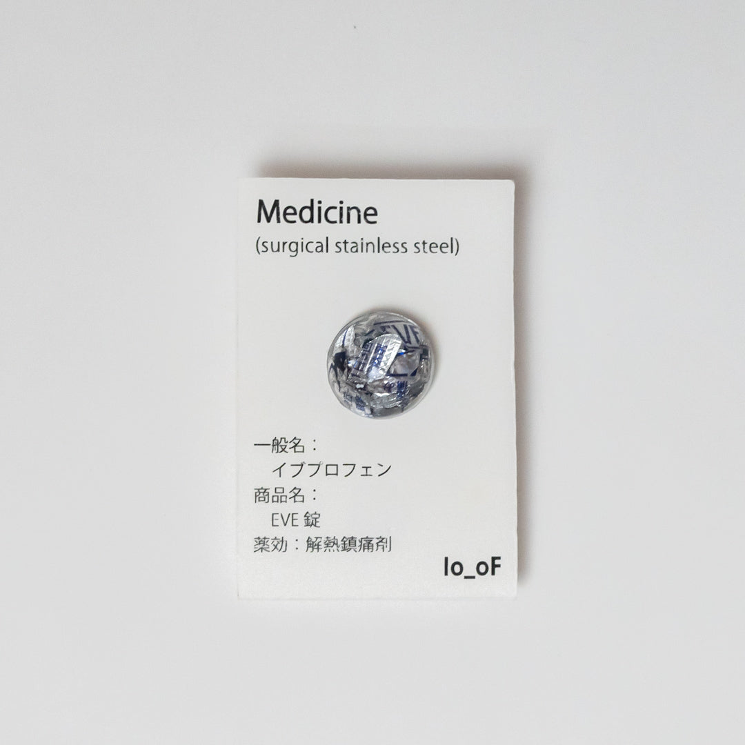 このアクセサリーは、薬が入っていたシートを詰め込んで出来ています。